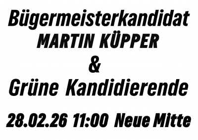 Entdecke Grün auf der Neuen Zeller Mitte Samstag, 28. Februar 202611:00 Uhr Neue Mitte Zell, Zell am MainVeranstaltet von: Ortsverband Bündnis 90/Grüne Zell am Main Diesen Termin als iCal-Datei herunterladen Kartenausschnitt auf OpenStreetMap anzeigen
